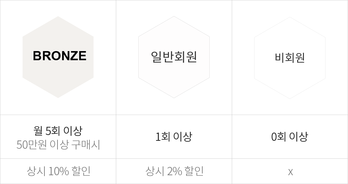 저희 쇼핑몰은 등급별 회원제를 실시하고 있습니다. 다양한 등급 혜택을 누려보세요.